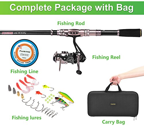 PLUSINNO® Spinning Rod and Reel Combos FULL KIT Telescopic Fishing Rod Pole with Reel Line Lures Hooks Fishing Carrier Bag Case and Accessories Fishing Gear Organizer Reviews